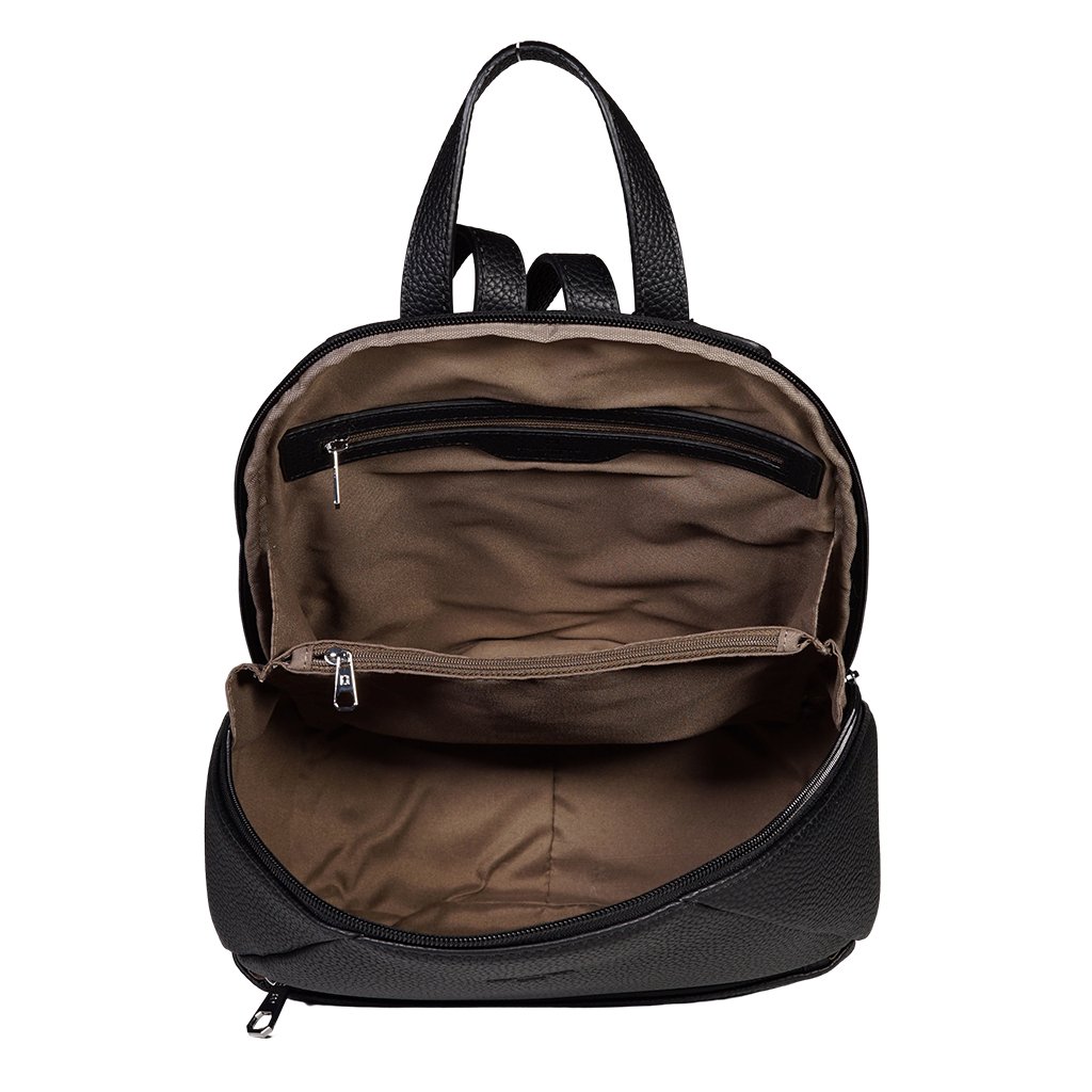 Z přední strany batůžku se nachází malá kapsička na zip. Tělo batohu je tvořeno velkou kapsou, rovněž bezpečně uzavíratelnou tentokrát na 2 zipy a uvnitř naleznete několik menších kapsiček na drobnosti. Baťůžek je určen pro nošení na zádech díky nastavitelným popruhům, případně jej lze uchopit i do ruky díky decentnímu uchu.