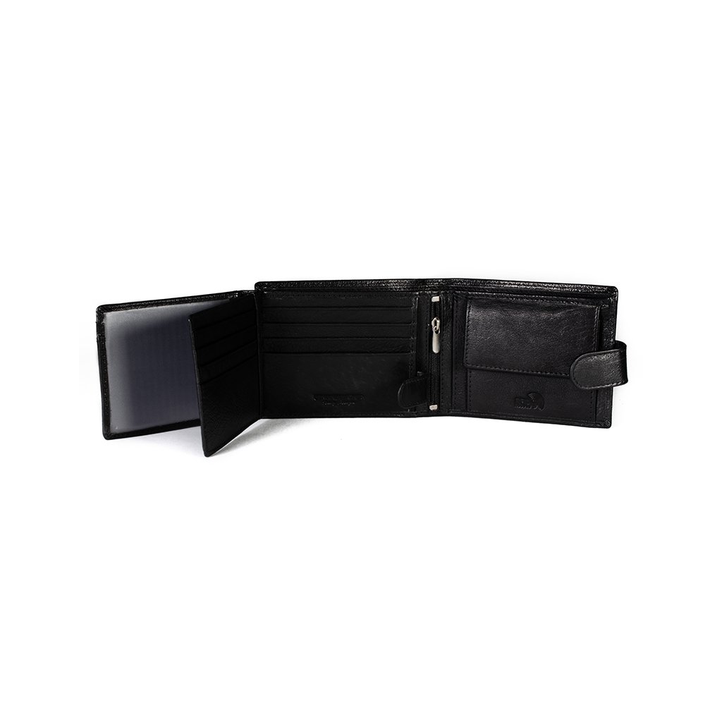 2 oddělení na bankovky, 1 oddělení na mince, 10 přihrádek na kreditní karty, 5 přihrádek na další doklady (občanský, řidičský průkaz apod.)