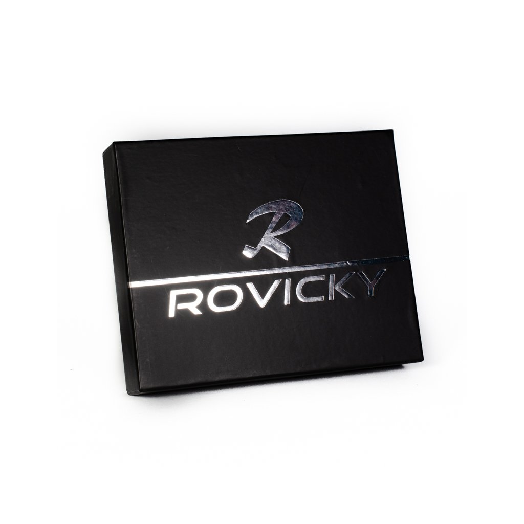 Produkty značky ROVICKY jsou vyráběny primárně z kvalitní hovězí kůže a v jejich sortimentu naleznete nejčastěji kožené pánské peněženky či opasky. Novější kolekce peněženek jsou často vybaveny technologií RFID Secure, která brání zneužití vaší bezkontaktní platební karty v peněžence.