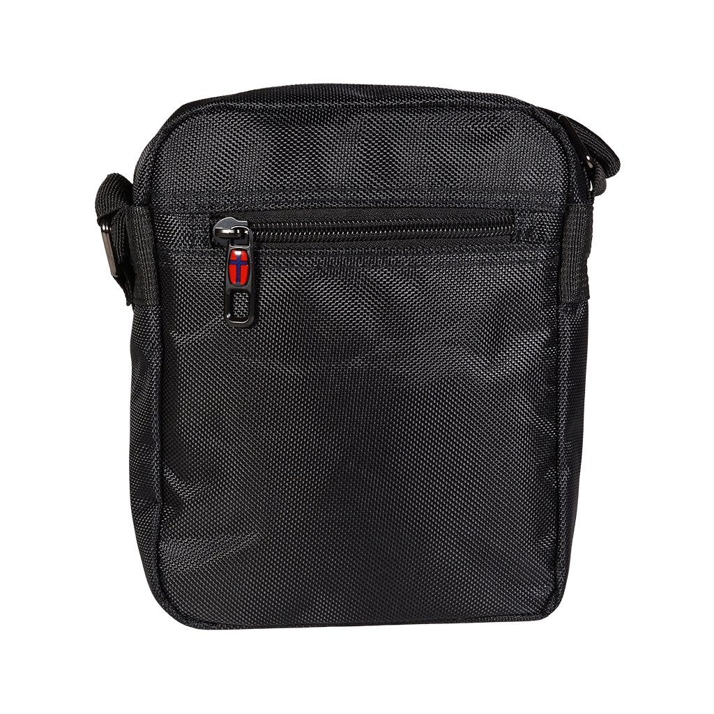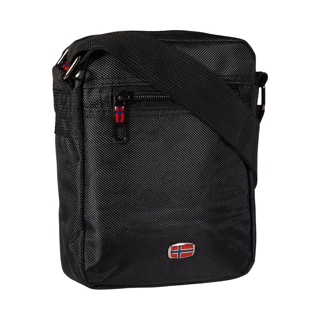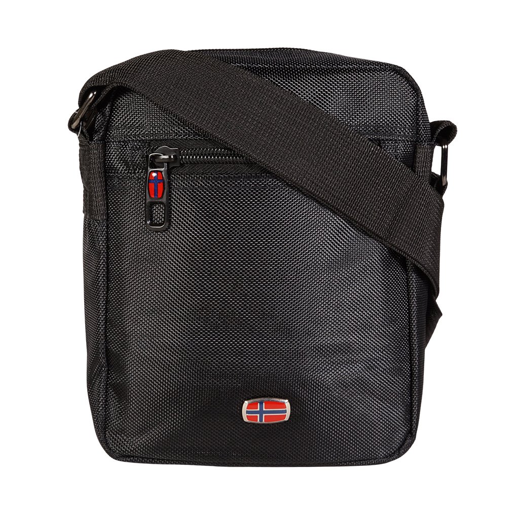 Z přední strany tašky se nachází znak norské vlajky a následují 2 kapsy bezpečně uzavíratelné na zip. Taška je určena pro nošení přes rameno a to díky nastavitelnému popruhu.