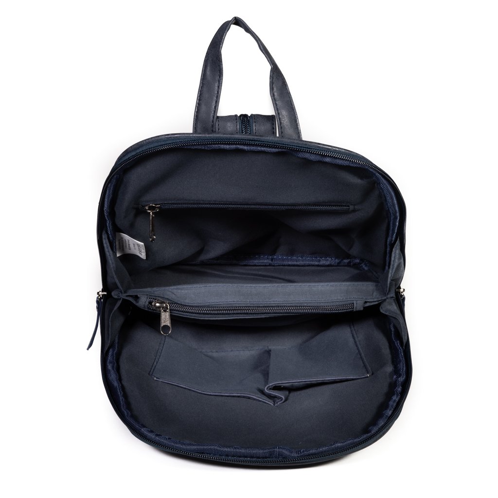 Batoh tvoří hlavní kapsa, která je uzavíratelná na 2 zipy a uvnitř naleznete ještě několik dalších menších kapsiček na drobnosti. Součástí batohu jsou i další 2 menší kapsy na zip ze přední i zadní strany. Baťůžek je určen pro nošení na zádech díky nastavitelným popruhům, případně jej lze uchopit i do ruky díky decentnímu uchu.